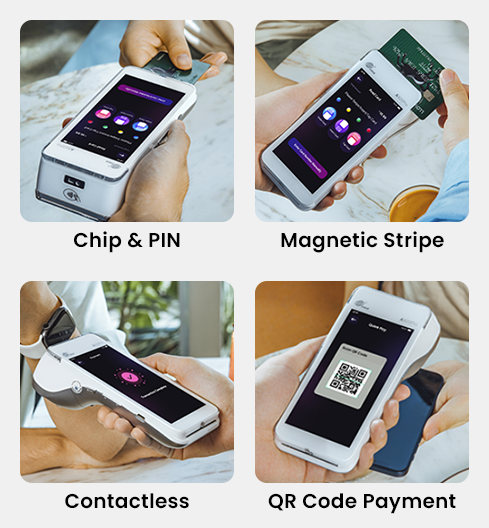 The A920 Pro supports chip & PIN, magnetic stripe, contactless (NFC), and QR code payments, giving customers the flexibility to pay however they prefer.